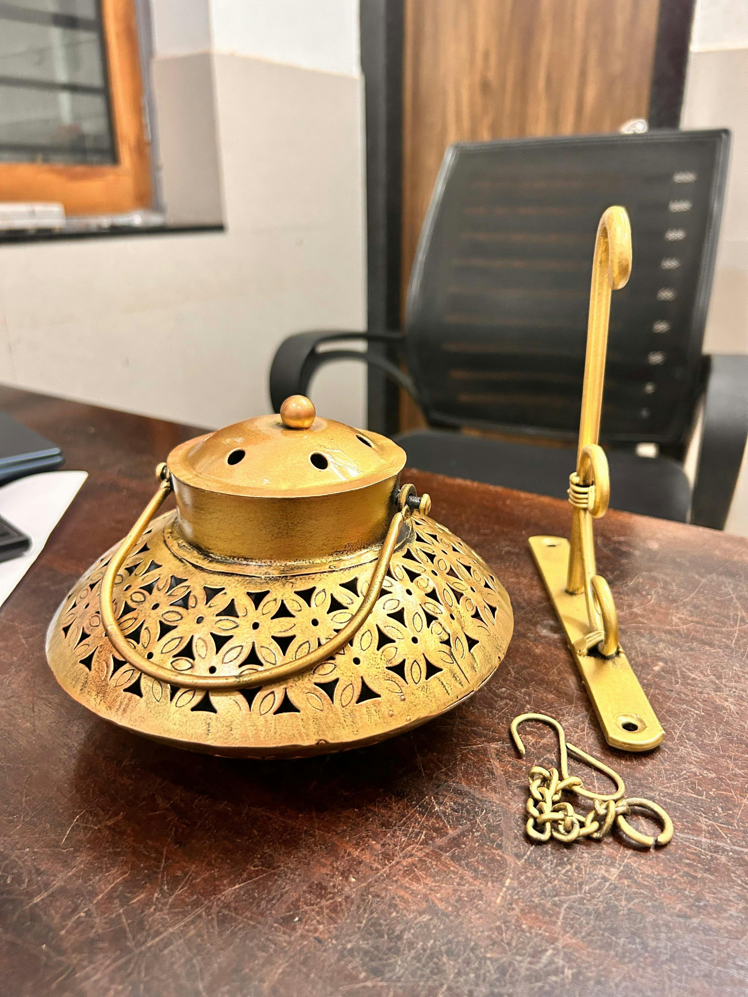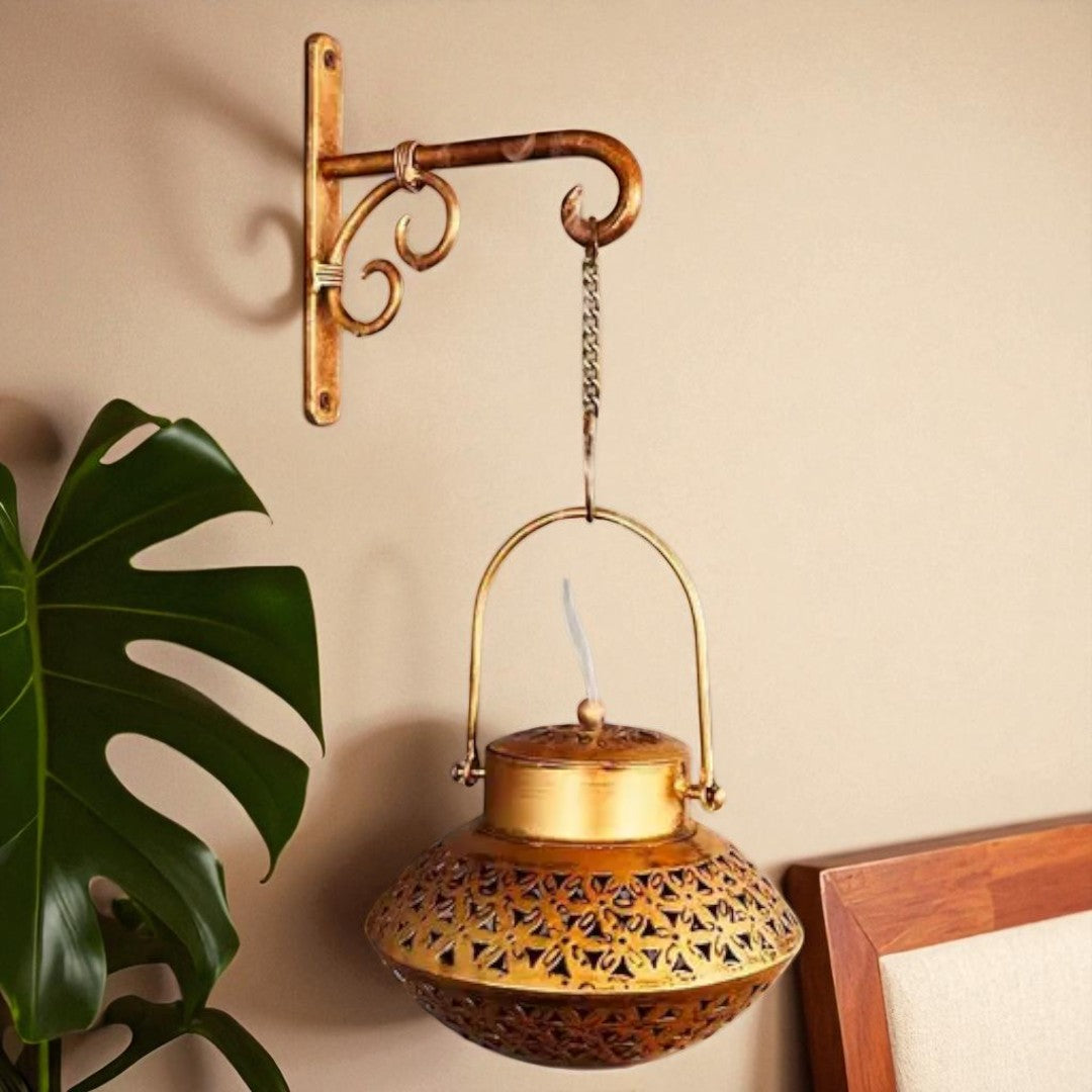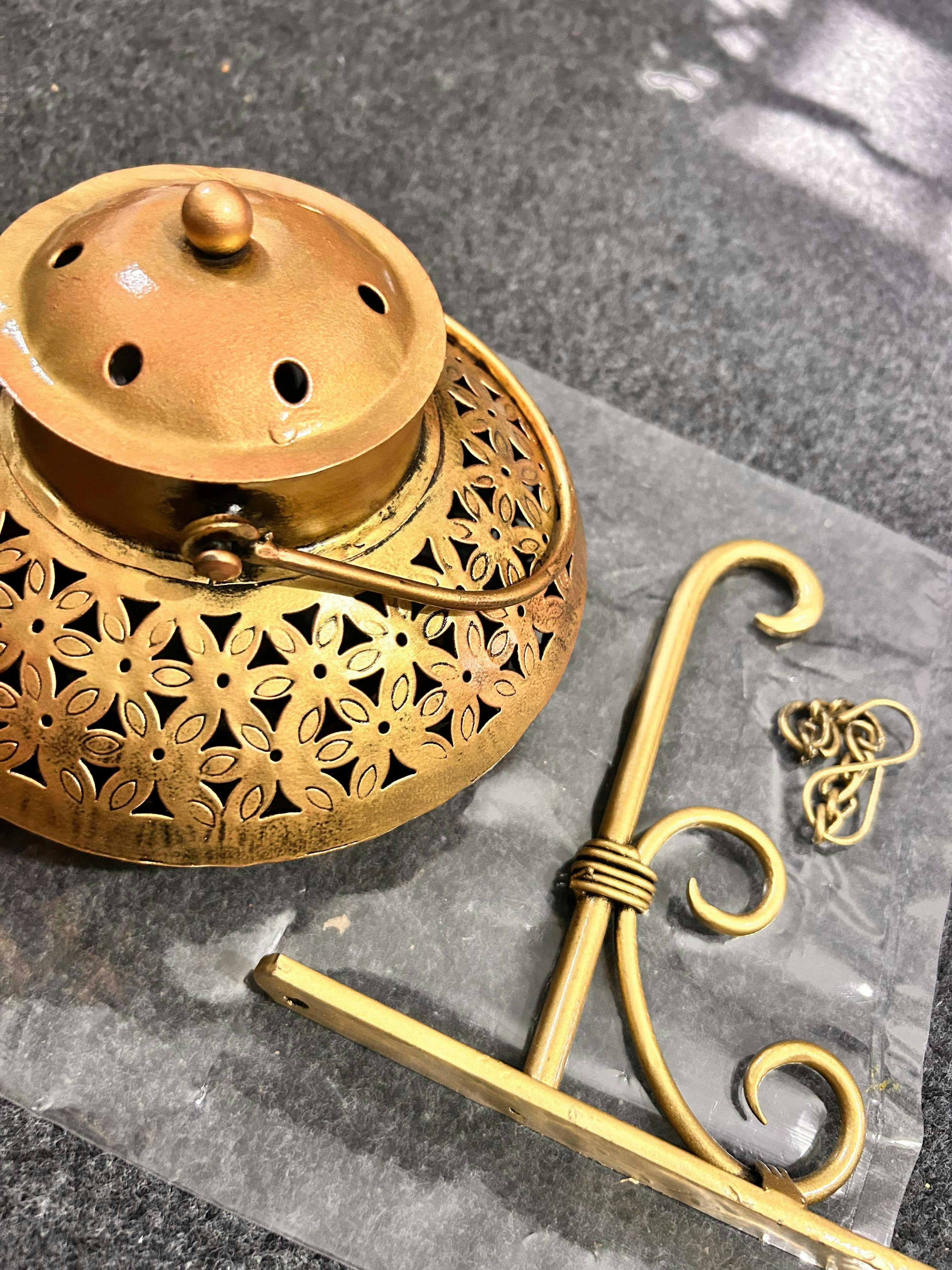 Name : Iron Small Handi Degchi Style And T-light Dhoop Holder With Bracket